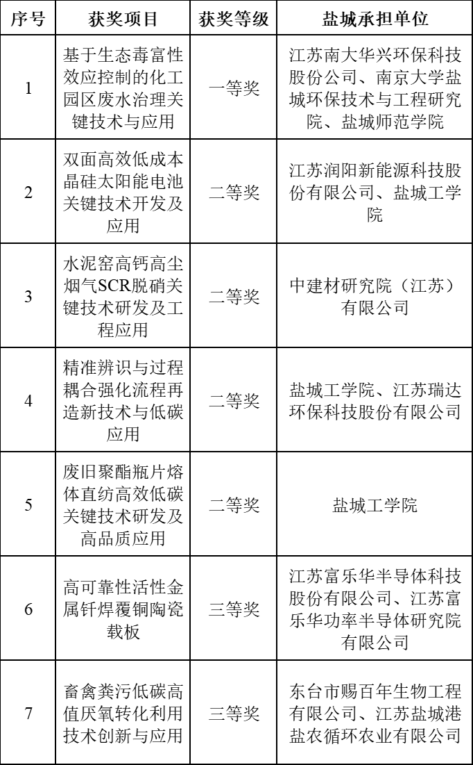 近日,省科技厅发布2024年度江苏省科学技术奖综合评审结果公示名单,盐城市共有7个项目入围,包含一等奖1项、二等奖4项、三等奖2项,涉及11家单位,创历史最佳成绩。其中,江苏南大华兴环保科技股份公司、南京大学盐城环保技术与工程研究院、盐城师范学院参与完成的“基于生态毒富性效应控制的化工园区废水治理关键技术与应用”项目获一等奖。